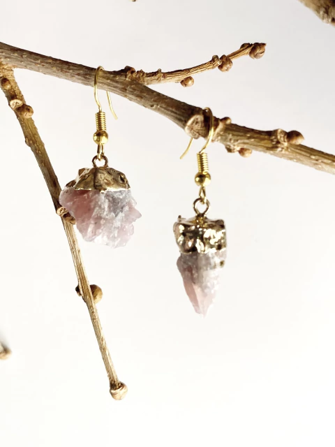 Par de aros ,con dije de CUARZO ROSA FRESA